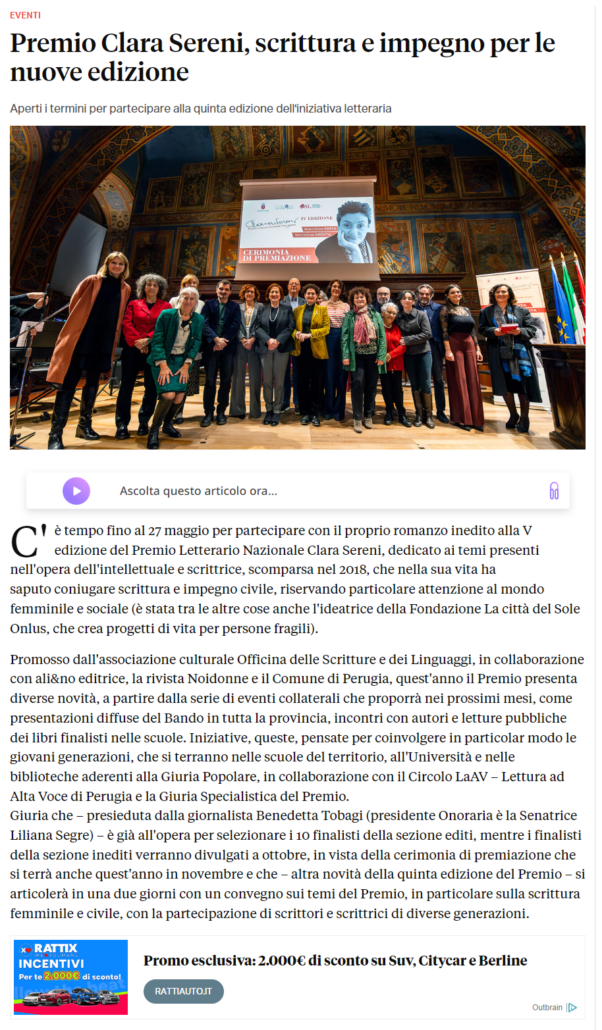 Medaglia del Presidente della Repubblica 2020, Presidente Onoraria Sen. Liliana Segre, è una manifestazione culturale ideata, organizzata e promossa da Associazione Culturale Officina delle Scritture e dei Linguaggi in collaborazione con ali&no editrice e la rivista “Noidonne”.